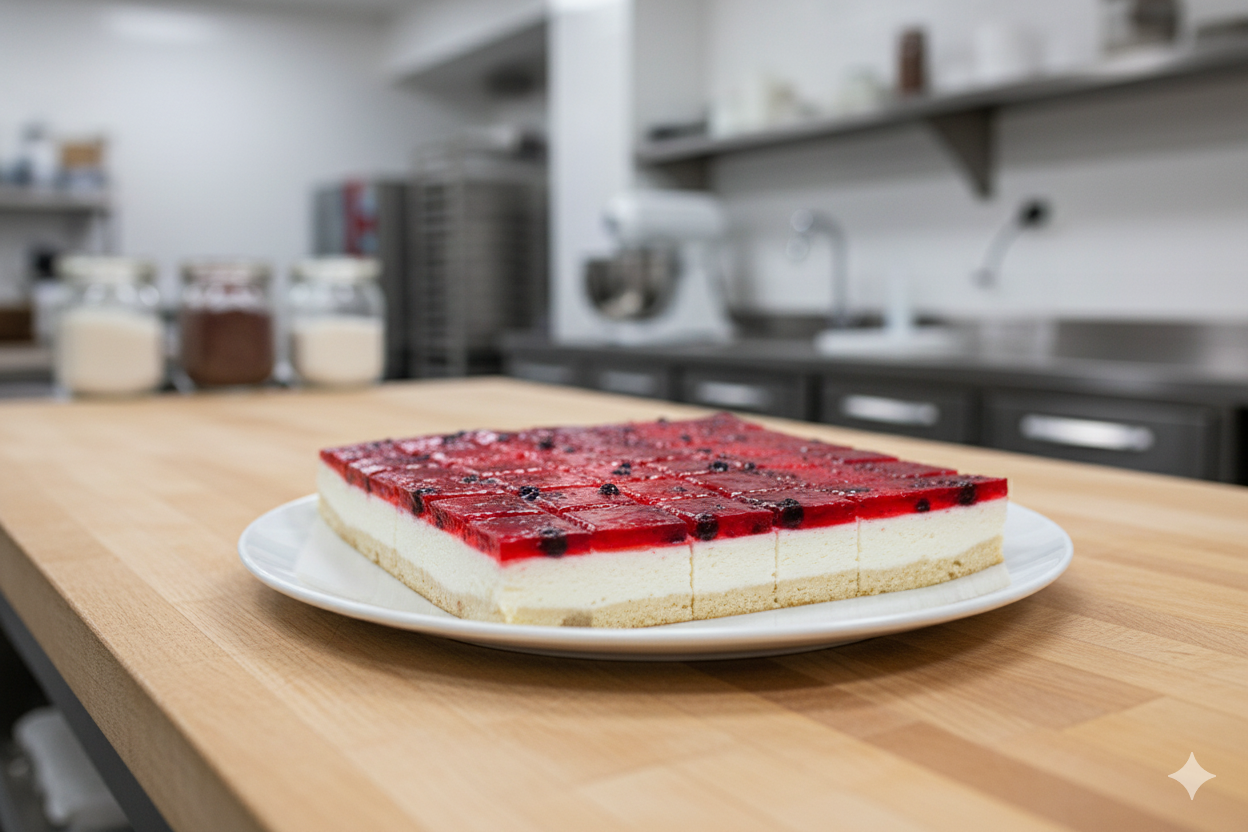 بلانشة مع كعكة إسفنجية وقاعدة موس الجبن ومغطاة بكريمة التوت الأزرق في الأعلى