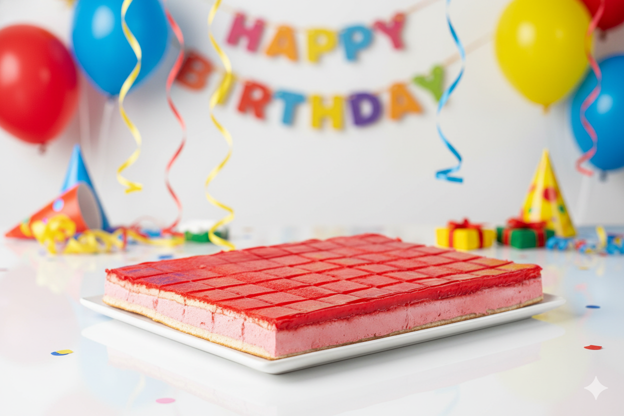 بلانشة ذات قاعدة إسفنجية، محشوة بموس الفراولة الناعمة، مزينة بطبقة الفراولة الجذابة.