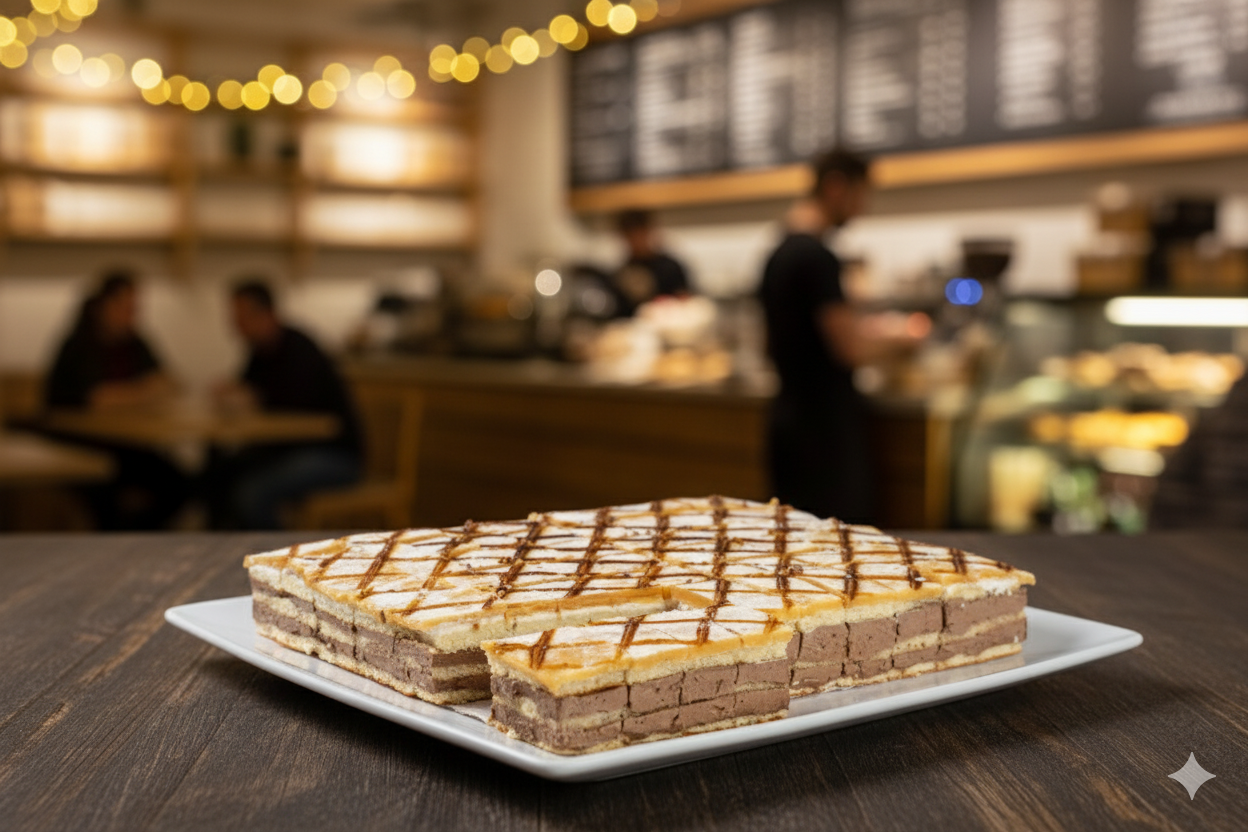Typical dessert filled with a soft chocolate mousse and marzipan from Toledo.