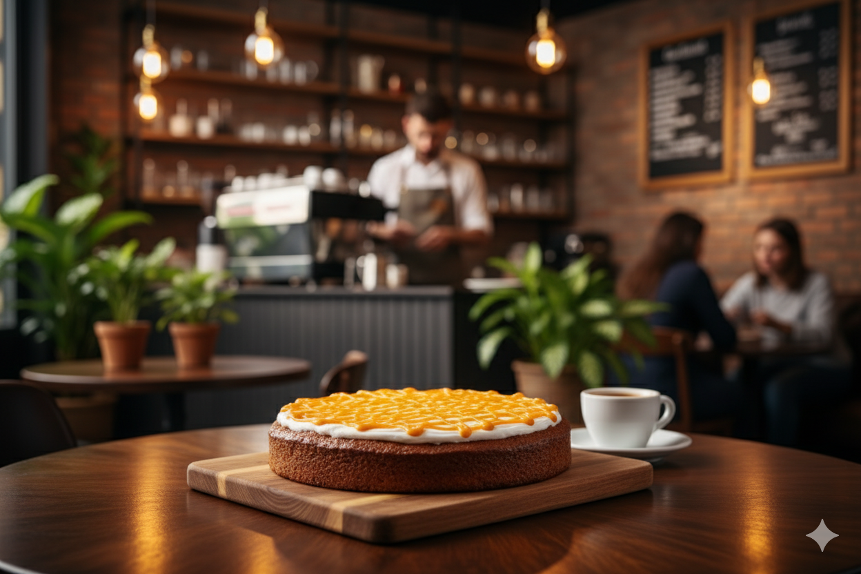 Gâteau éponge à la carotte avec une garniture au fromage frais et des zestes de carotte sur la surface.
